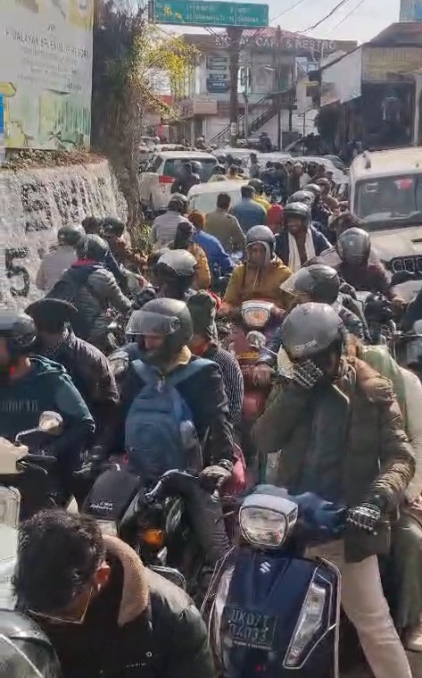 बर्फबारी का आनंद लेने बड़ी संख्या में पर्यटकों के आने से मसूरी क्षेत्र में हर जगह जाम ही जाम नजर आ रहा है। मसूरी देहरादून मार्ग पर वैलीब्रिज, कोल्हूखेत व जेपी बैंड से लाइब्रेरी तक दिन भर दो किमी से अधिक का जाम नजर आया, वहीं कैंपटी रोड, लंढौर रोड, व एनएच 707ए टिहरी बाईपास, सुवाखोली व बुरांसखणडा, काणाताल में भी दिन भर जाम लगा रहा व वाहन रेंगते नजर आये। हालांकि पुलिस की अतिरिक्त तैनाती की गयी थी लेकिन वह पर्याप्त न होने से पर्यटक दिनभर जाम से जूझते रहे। कई पर्यटकों ने सोशल मीडिया पर भी डाला कि मसूरी में न आये यहां जाम से लोग घंटो परेशान हो रहे हैं। लाइब्रेरी से किंक्रेग व उससे आगे जेपी बैंड तक करीब दो किमी लंबा जाम लगा रहा यहीं हाल बैलीब्रिज व कोल्हू खेत पर भी नजर आया वहीं टिहरी बाईपास एनएच 707 पर भी दिन भर जाम की स्थिति नजर आयी। वहीं पिक्चर पैलेस से लंढौर मार्ग व लाल टिब्बा क्षेत्र में भी जाम से पर्यटक जूझते नजर आये। वहीं लंढौर बाजार में भी हर समय की तरह लोग जाम में फंसने को मजबूर होते रहे।