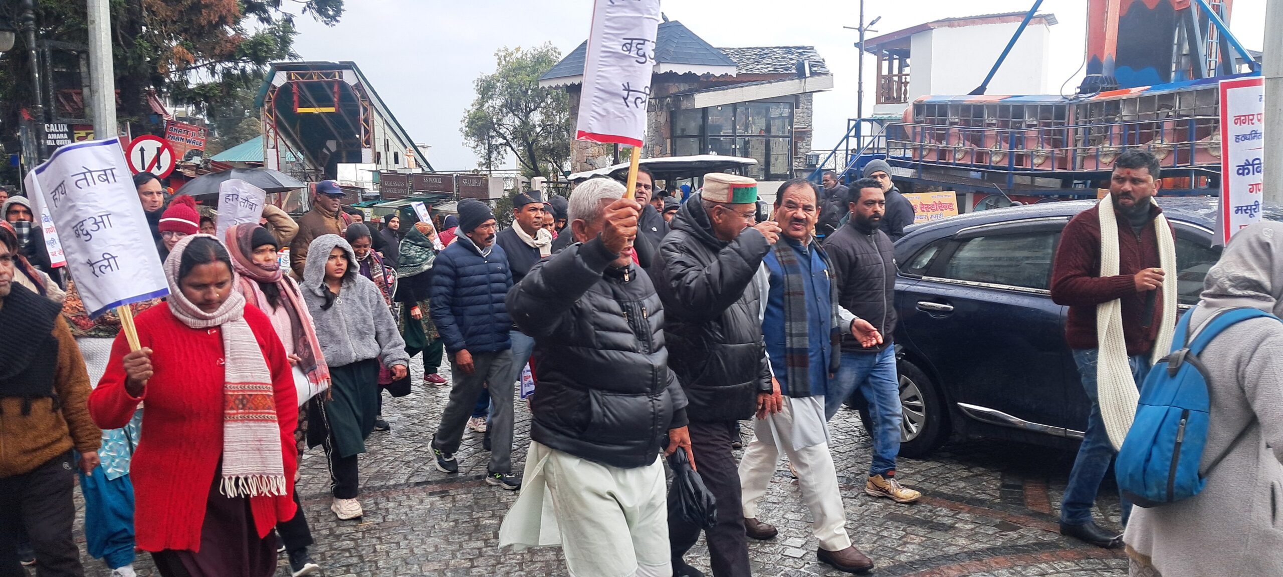 कांग्रेस इन सभी गरीबों, मजदूरों ,ठेली पटरी वालों के साथ है जिनकी रोजी रोटी छीनी जा रही है। यह सरकार का दायित्व है, उन्होंने कहा कि गणेश जोशी छोटे भाई है उनकी राजनीति में बड़ी मदद की उनकी जिम्मेदारी है, नगर पालिका व सरकार तथा प्रशासन की जिम्मेदारी है, कांग्रेस इस लड़ाई को तब तक लड़ेगी जबतक इसका समाधान नहीं हो जाता। रैली में पूर्व विधायक जोत सिंह गुनसोला ने कहा कि सरकार को अपने तीतिगत निर्णयों पर अडिग रहना चाहिए। केंद्र की सरकार ने निर्णय लिया कि फुटपाथ पर जो अपनी रोजी रोटी चला रहे है उनके लिए वेंडर जोन बनायेगे व प्रदेश की सरकार ने उसपर पहल की लेकिन अभी तक स्थानीय सरकार ने कहीं भी वेंडर जोन की शुरूआत नहीं की ,अगर वह बन जाता तो सबकी समस्या का समाधान हो जाता ये कोई महल नहीं मांग रहे केवल चूल्हा जलाने व बच्चों को पढाने का अधिकार मिले व रोजगार की व्यवस्था हो, यह करना भी पडेगा क्योकि बेरोजगारी का दंश पूरे देश को लील रहा है, प्रदेश सरकार ने कहा कि महिलाओं के लिए रोजगार की व्यवस्था कर रहे है व रात की पाली में भी महिलाएं कार्य कर सकती है, लेकिन सुरक्षा की कोई गारंटी नहीं है, सरकार को सामाजिक सुरक्षा भी देनी होगी। उन्होंने कहा कि दो बार वह पालिकाध्यक्ष रहे उन्होंने भी पटरी वालों को रोजगार दिया, यह स्थानीय सरकार व राज्य सरकार सुव्यवस्थित वेंडर जोन बनाये। इस लड़ाई को अंजाम तक पहुंचाना होगा। इन्ही लोगों ने राखिंया पहनाई, उनको जिताया लेकिन आज उनको उजाड़ा जा रहा है। इस पर स्थानीय सरकार को व्यवस्थित कर पुनर्वास करना होगा, सड़क पर बैठना कोई हल नहीं है। इस मौके पर कांग्रेस नेता सुशांत बोहरा ने कहा कि जब यहां कांग्रेस की सरकारे रही तब भी उन्हें विस्थापन की बात कही लेकिन उन्हें हटाया नहीं गया यह तानाशाही है, इनके लिए नया पर्यटक स्थल बनाना होगा ताकि सभी का विस्थापन हो सके विदेशों में ऐसा होता है व उनके लिए कार्य होता है। उन्होंने कहा कि रेहडी पटरी वालो ने रैली निकाली व गत छह माह से बेरोजगार बैठे है, उन्होंने कहा कि टीवीसी कमेटी ने किस आधार पर हटाया, किन्हें समायोजित किया सभी शंका के घेरे में है जब कि वेंडिग जोन पूरा नहीं बना पाते उन्हें नहीं हटाया जाना चाहिए। जहां इन्हें बिठाया जा रहा है वहां पर रोजगार नहीं है।विदेशों की तर्ज पर नाइट मार्केंट बनायी जाय, जिसमें इनकी व्यवस्था हो सकती है ताकि उनकी रोजी रोटी चल सके, पालिका प्रदेश सरकार व प्रशासन इस पर गंभीरता से निर्णय लें व उनकी समस्याओं का समाधान करें। इस मौके पर रेहडी पटरी कमजोर वर्ग कल्याण समिति के अध्यक्ष राम किशन राही, महामंत्री संजय टम्टा व गोविंद नौटियाल ने भी कहा कि यह बददुआ रैली है, जो बच्चे घरों में भूखे प्यासे है, रोजगार नहीं है उसके बाद भी ठोस नि