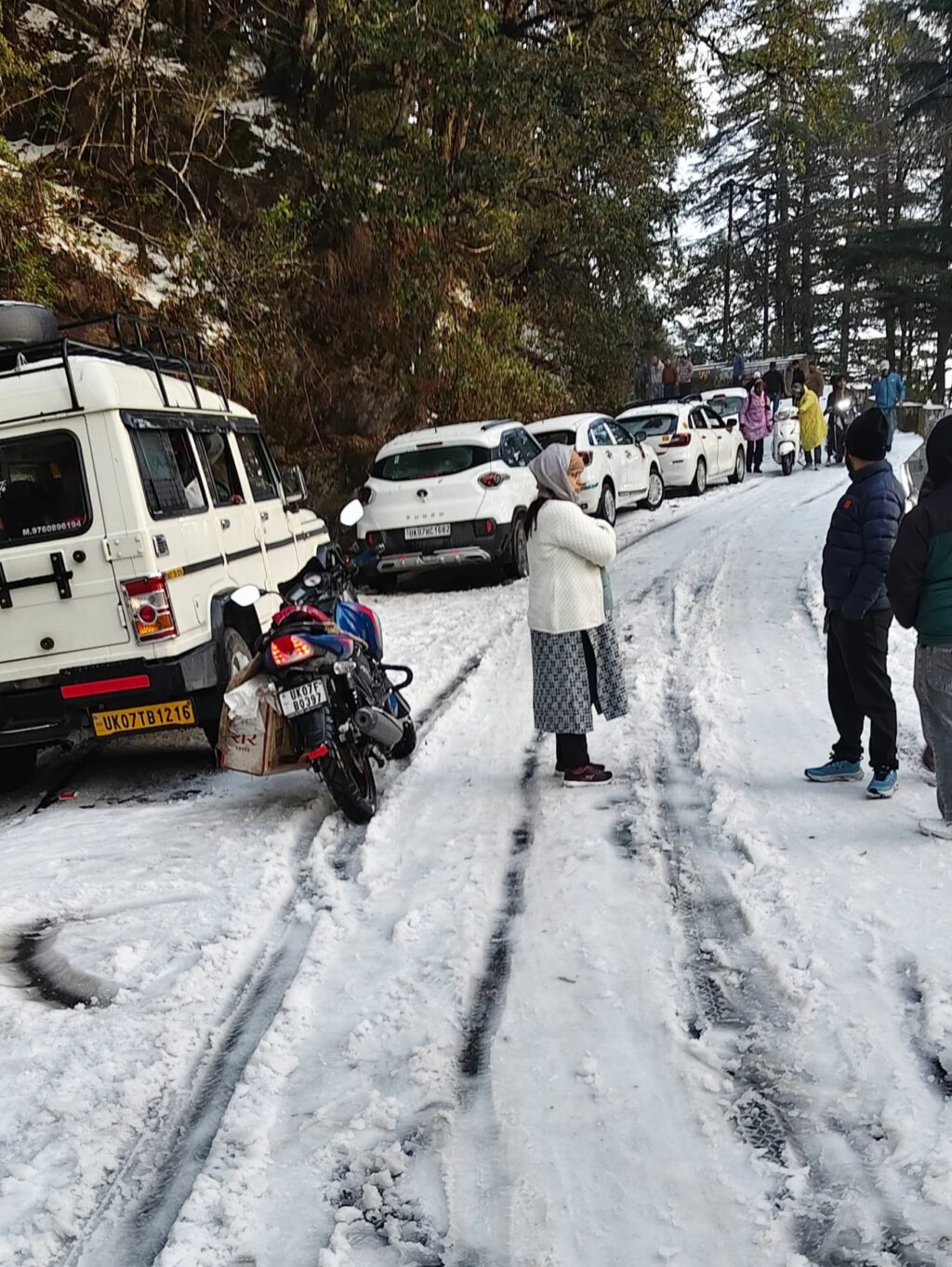 मसूरी के निकटवर्ती क्षेत्र मसराना से धनोल्टी तक बर्फ पड़ी ।