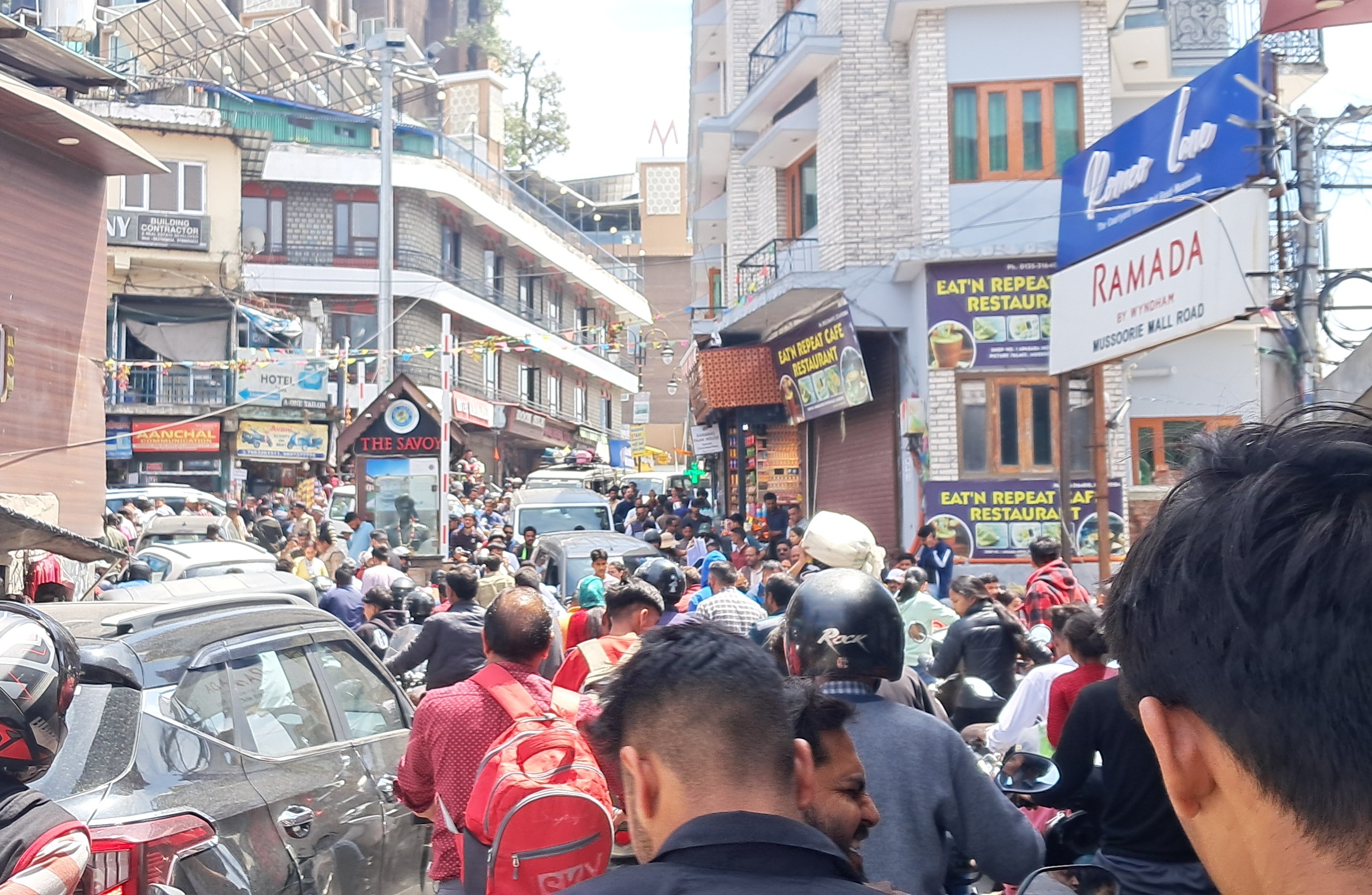 मसूरी। पर्यटन नगरी मसूरी में शनिवार को लगभग 12:00 से भगत सिंह चौक पिक्चर पैलेस पर सीजन शुरू होने से पहले ही लगा अब तक का सबसे बडा जाम इस दौरान पैदल चलने वालों को भी निकलने की जगह तक नहीं मिल पाई जिससे पर्यटकों के साथ ही स्थानीय निवासियों को भारी परेशानियों का सामना करना पड़ा वहीं इसी दौरान स्कूलों की छुट्टी का टाइम भी हो गया जिससे परिजनों को स्कूलों तक पहुंचने मैं काफी समय लग गया पिक्चर पैलेस चौक पर करीब एक घंटे से ऊपर तक जाम की स्थिति बनी रही वहीं सड़क किनारे लगे टू व्हीलर और फोर व्हीलर के कारण सबसे ज्यादा जाम की स्थिति पैदा हो गई वही माल वाहक वाहन भी जाम का कारण बन रहे हालांकि नगर पालिका द्वारा एक दिन पहले पर्यटन सीजन की तैयारी को लेकर बैठक की गई थी बैठक लेकिन बैठक में लिए गए निर्णय हवाई साबित होते हुए नजर आ रहे हैं पिक्चर पैलेस चौक पर एक भी पुलिसकर्मी जाम को सुचारू करता हुआ नहीं दिखाई दिया जिससे मसूरी में सबसे ज्यादा कमी पुलिस प्रशासन की मानी जा रही है वहीं नगर पालिका द्वारा भी निर्धारित समय के बाद पालिका बैरियर से गाड़ियां भेजी जा रही है जिसे जाम की समस्या और भी ज्यादा विकट होती जा रही है जाम लगने से माल रोड पर व्यापारियों का व्यापार भी पूरी तरह से चौपट होता हुआ नजर आ रहा है व्यापारियों का कहना है कि जाम लगने से एक भी पर्यटक खरीदारी करने के लिए दुकानों में नहीं आते जिससे हर दिन आर्थिक नुकसान भुगतना पड़ रहा है